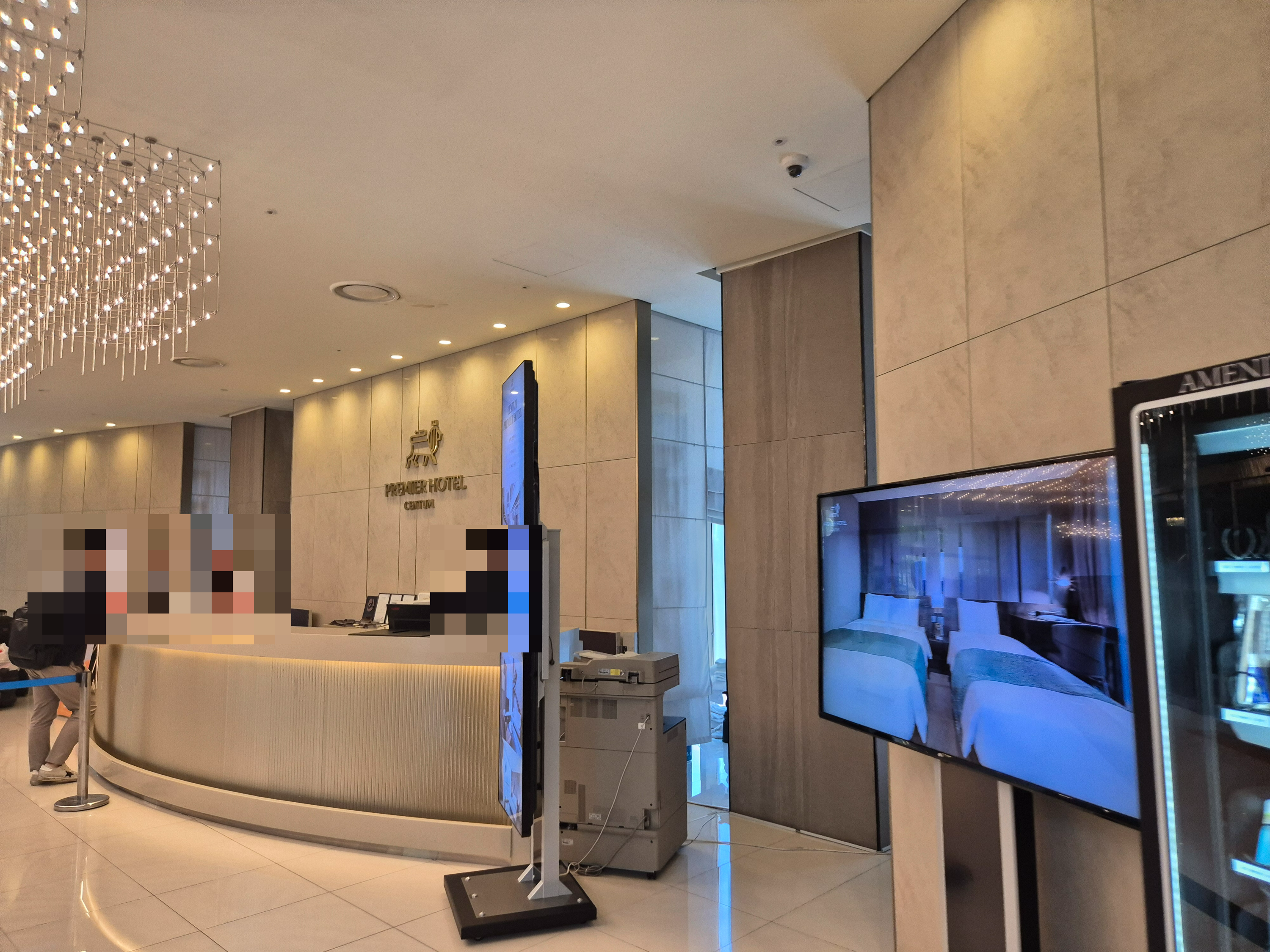 문제는 호텔 로비가 복잡하다는거다.. 일단 입구에서 들어가고 나서 처음 만나는 카운터는 다른 호텔의 입구더라...! 조금 들어가니 프리미어 호텔이라고 적혀 있어서 여기서 체크인을 하려고 했는데...