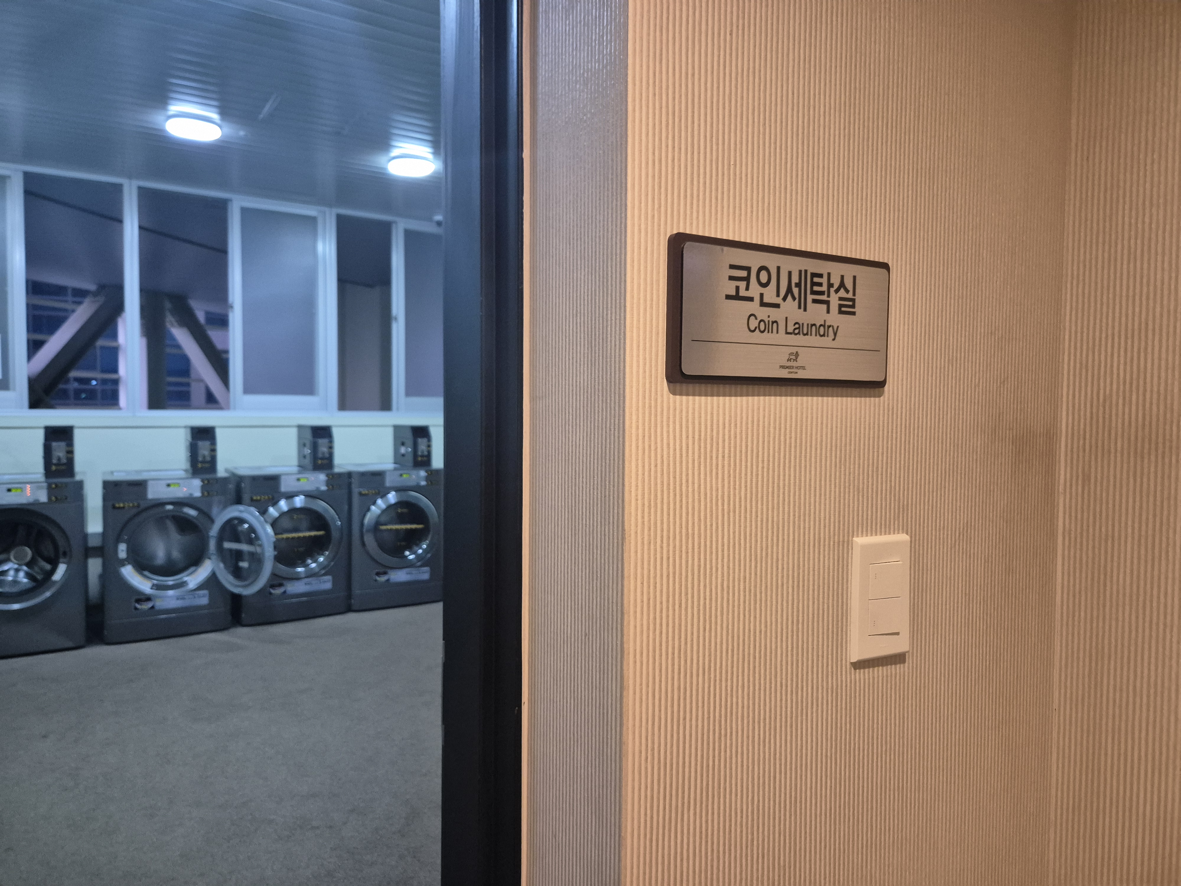 첫째 날 잠을 거의 자지 못하기도 했고 새벽부터 깨어 있어서 운동이나 다녀올 요량으로 피트니스가 있다는 12층으로 이동했다. 참고로 우리 숙소는 A동이어서 1층으로 이동 후 B동으로 가는 엘리베이터를 타고 이동해야 한다. 코인세탁실이 있어 촬영해 봤다.