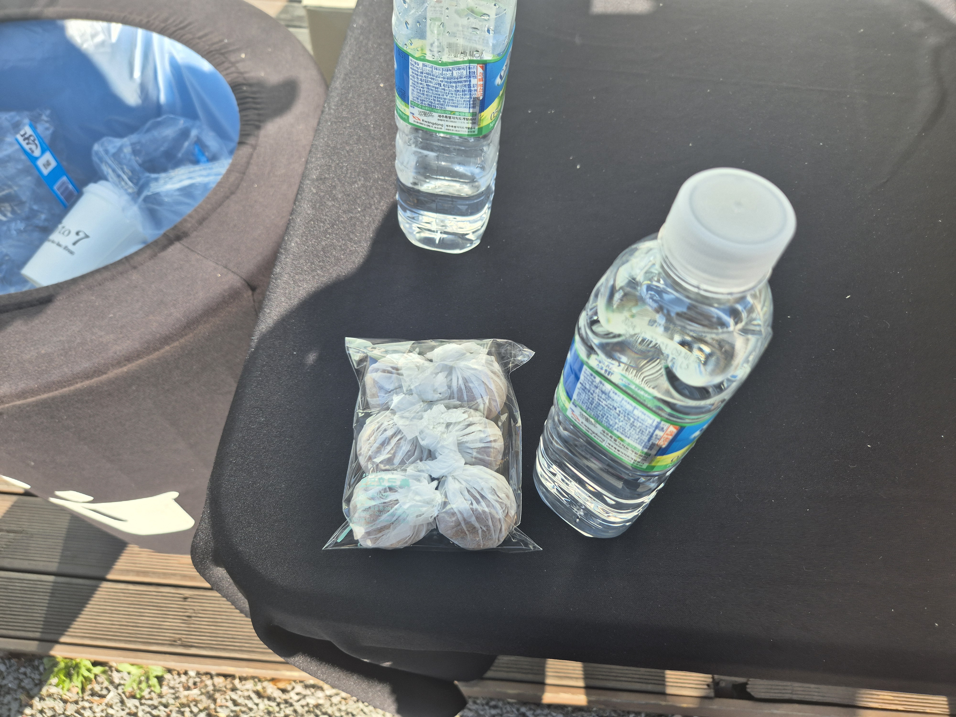 물과 호두과자도 준다. 호두과자는 나중에 집에 가서 간식으로 잘 먹었다.