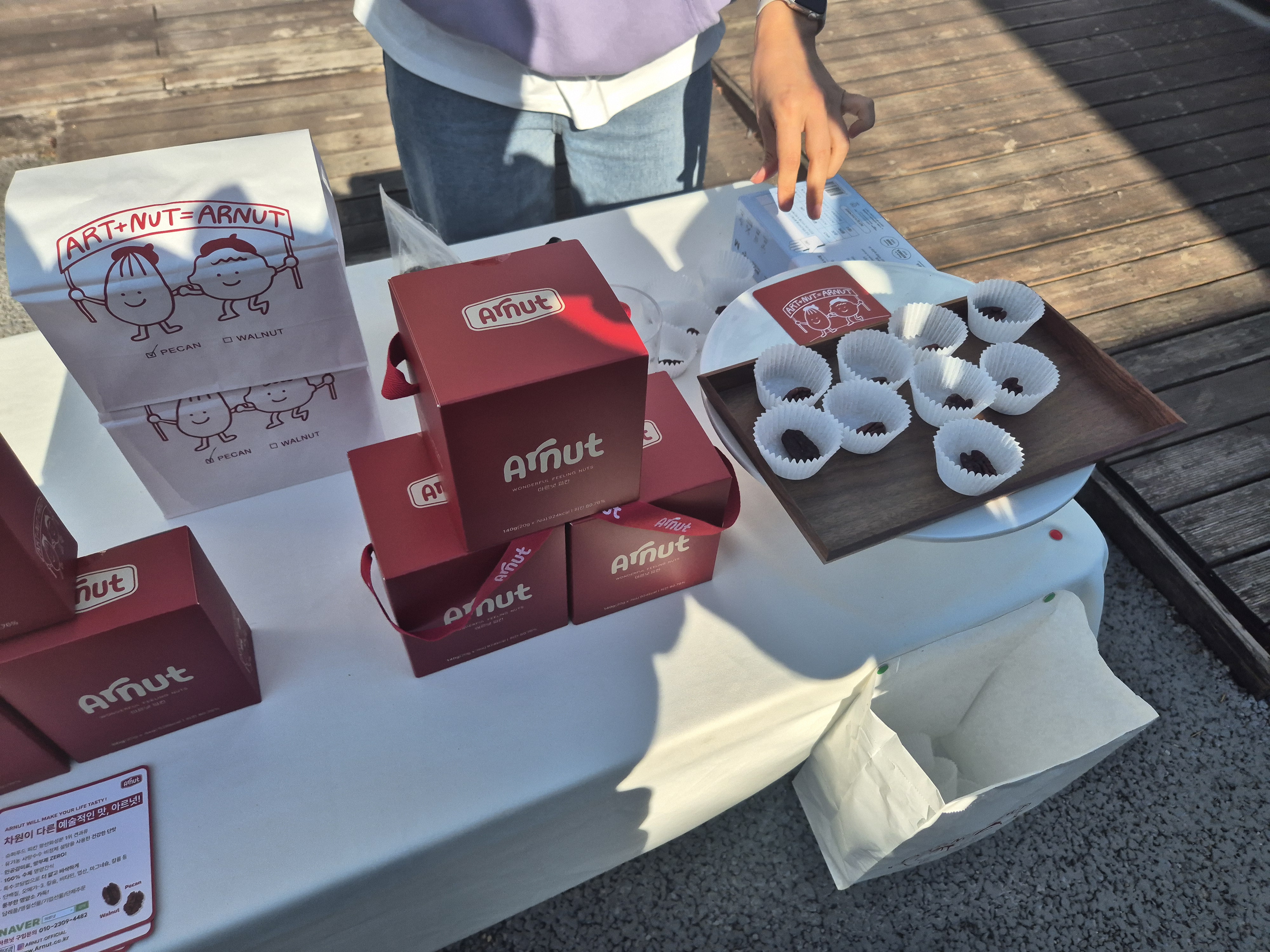 게다가 마치 본 이벤트의 코스처럼 절묘하게 함께 버무려졌던 가게 홍보..! 알넛!! ㅋㅋㅋ 피칸인 거 같은데... 개 맛있더군..ㅋㅋ