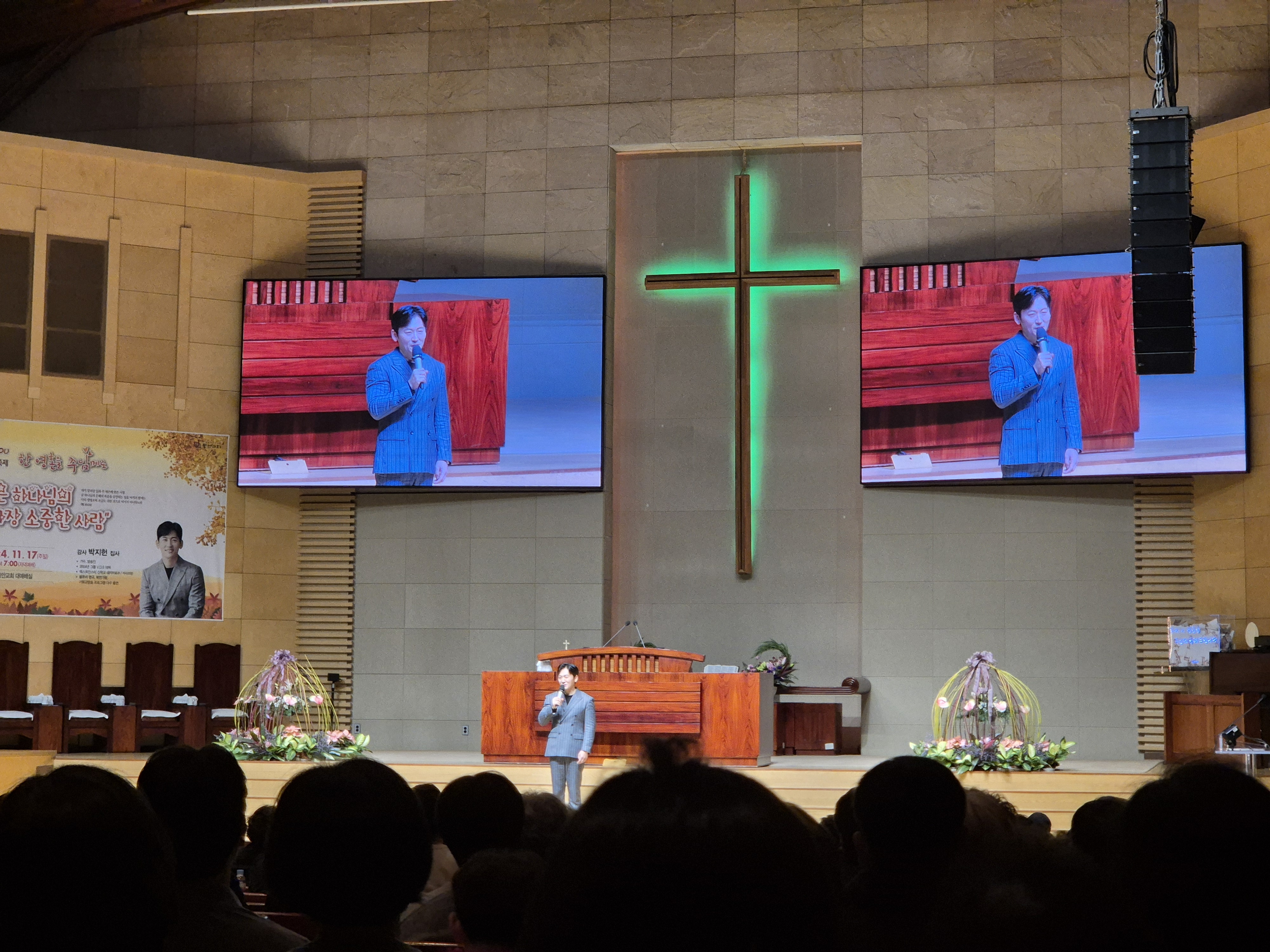 VOS의 박지헌이라는 가수분이 오셨는데.. 가요를 많이 부르시리라 기대하고 갔는데 전혀..ㅋㅋㅋ 자기는 이런 성전에서 사랑/이별 노래는 부르는 게 죄스럽다며..ㅋㅋ 반 곡 정도 부르시고 다 찬송가만 부르시더라.. 입담은 좋으신데 주제가 하나로 모아지는 느낌이 없어서 아쉬웠다. 다둥이 아빠인지는 몰랐는데 이 날 엄청 뼈 때리는 얘기를 많이 하셨다..ㅋㅋㅋㅋㅋ