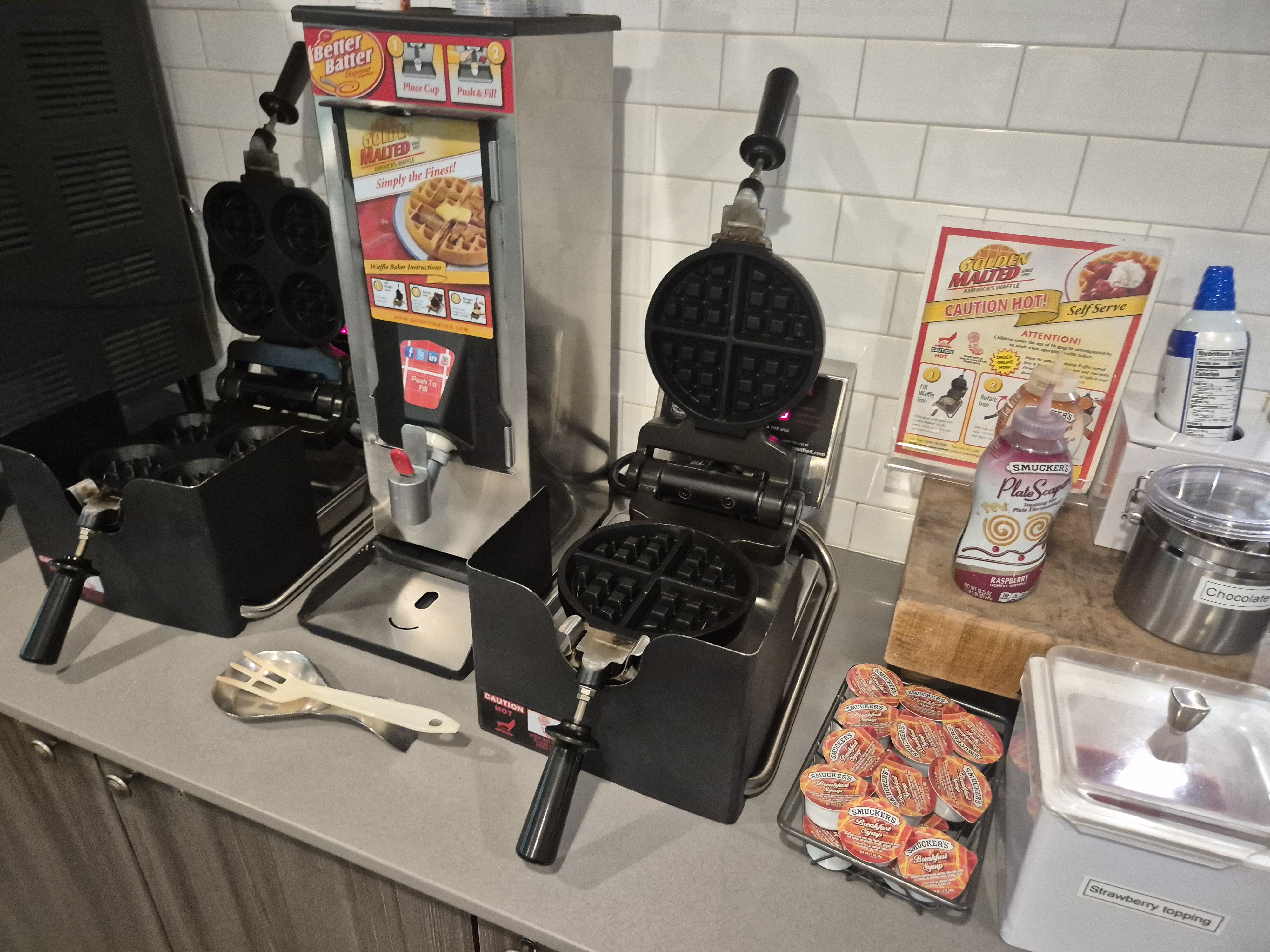와플 기계도 큰 와플 기계뿐만 아니라 저렇게 작은 와플을 하나씩도 구워 먹을 수 있더라. 큰 사이즈로 먹으면 물리는데 작은 사이즈로 하나만 만들어 먹으니 딱 양이 맞더라.