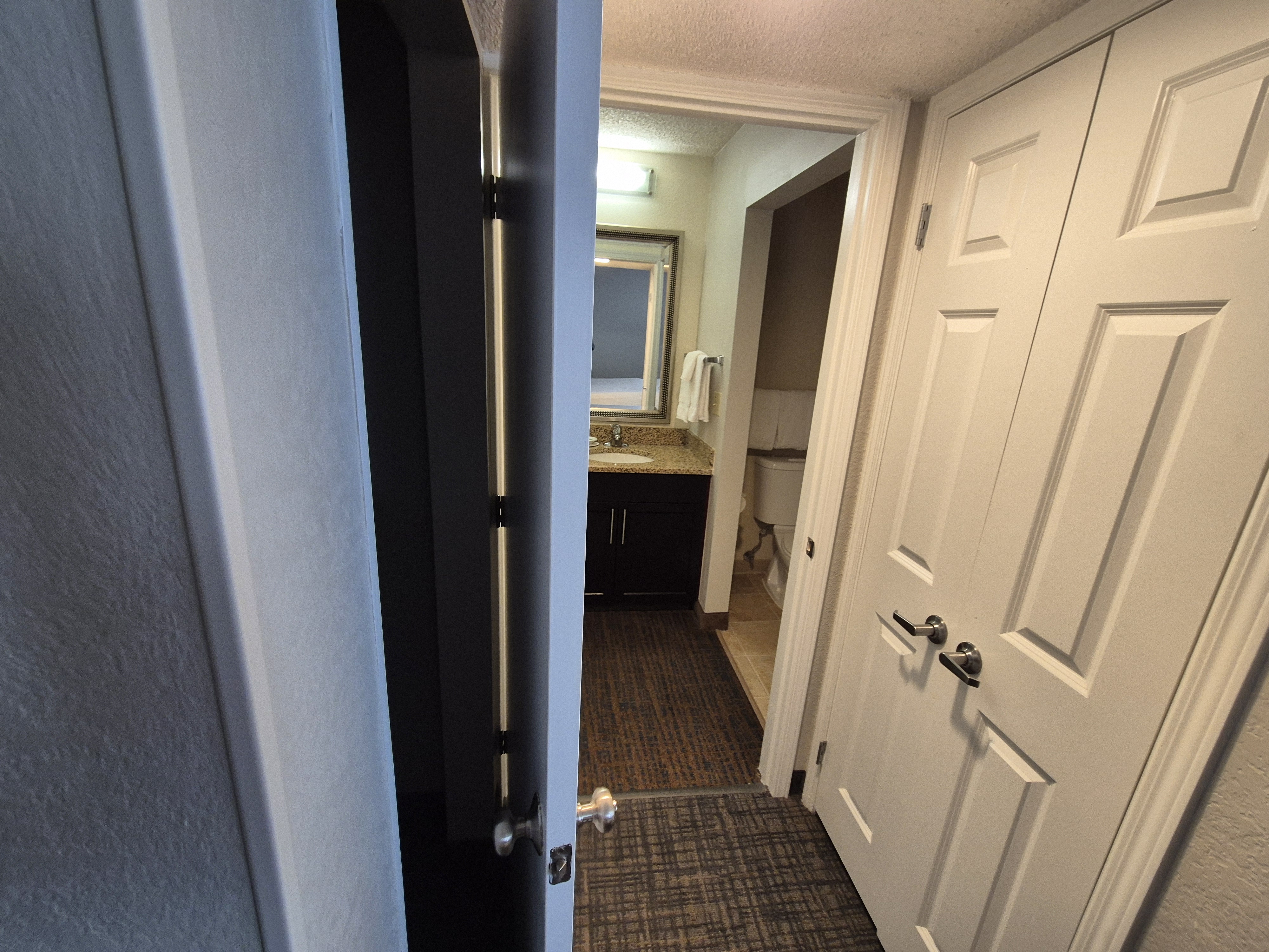 첫 번째로 소개할 호텔은 컨벤션 센터에서 걸어서 30분 정도 가면 있는 애너하임 메리어트 스위트이다. 원래는 비싼 호텔인데 5박 이상 연박을 할 경우 700불 정도로 매우 저렴하게 머물 수가 있더군!! 이렇게 보면 진짜 인근 괜찮은 호텔들에서는 나올 수 없는 가격이더라. 나도 정말 여기서 머무르고 싶었지만, 쌓아둔 숙박권도 써야 하고 해서, 대신 같이 가는 학생들에게 이 호텔을 추천했다..ㅎㅎ 일단 예약은 내 이름으로 되어 있어서 내가 체크인을 먼저 하고 숙소를 휙 훑어봤다.