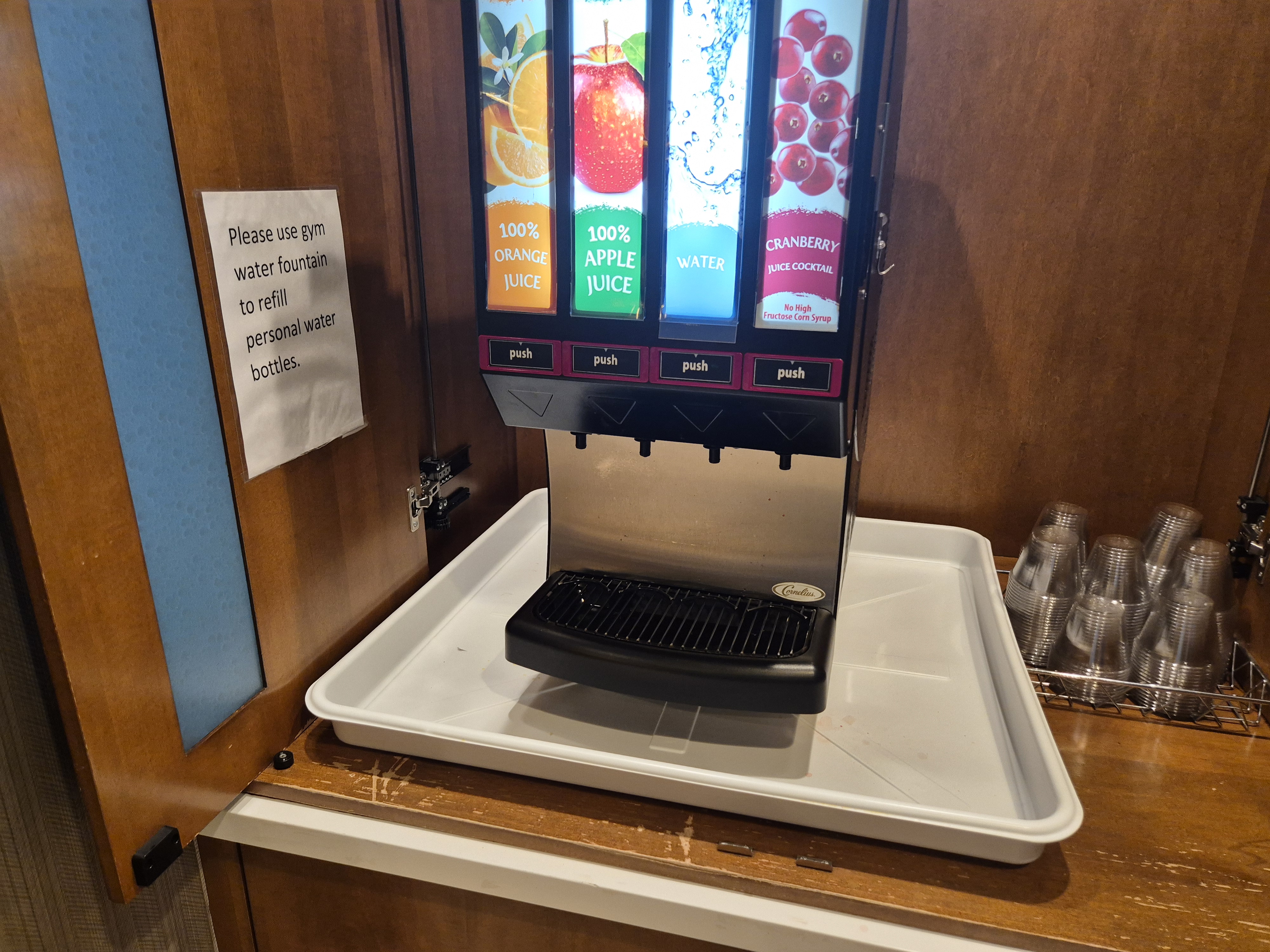 아쉽게도 물은 없다. 다행히 남은 물병이 있어서 피트니스 센터에 있는 정수기에서 물을 열심히 떠 와서 마셨지..ㅎ