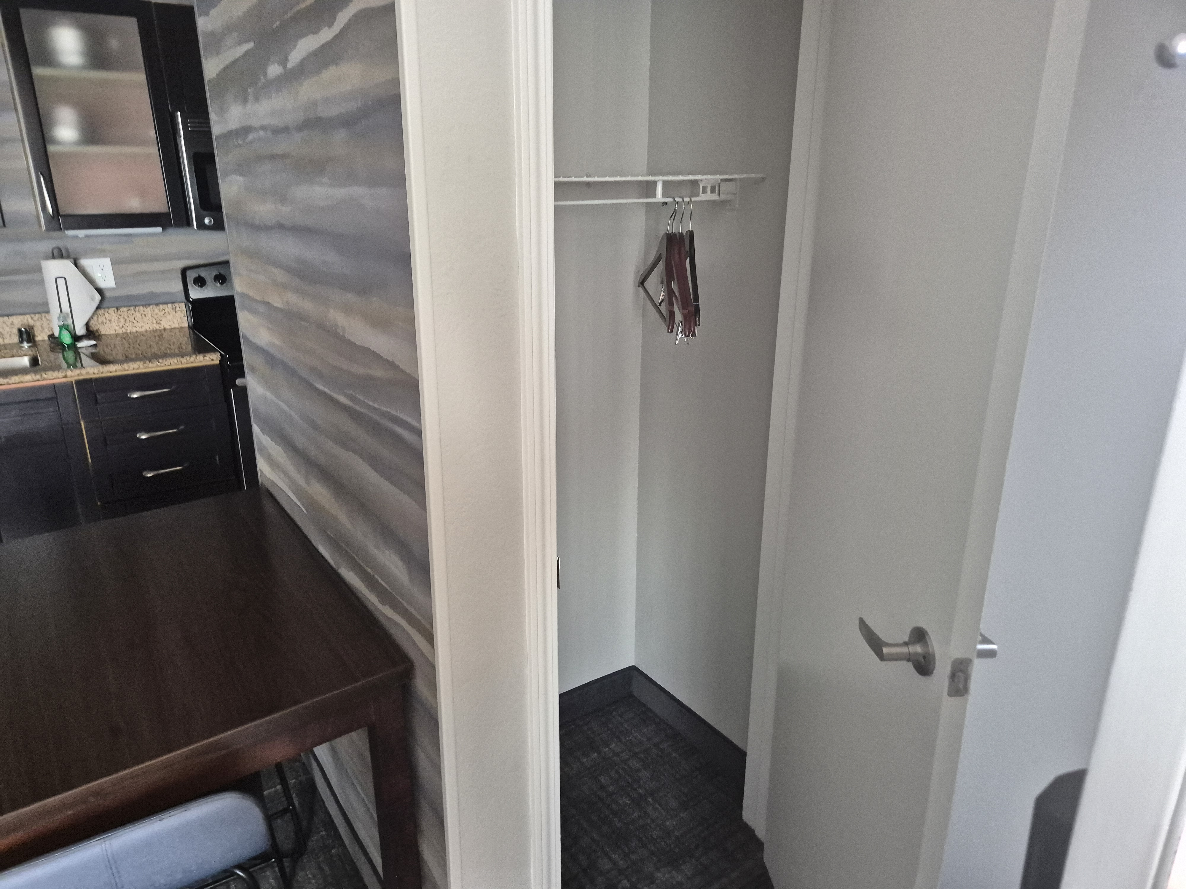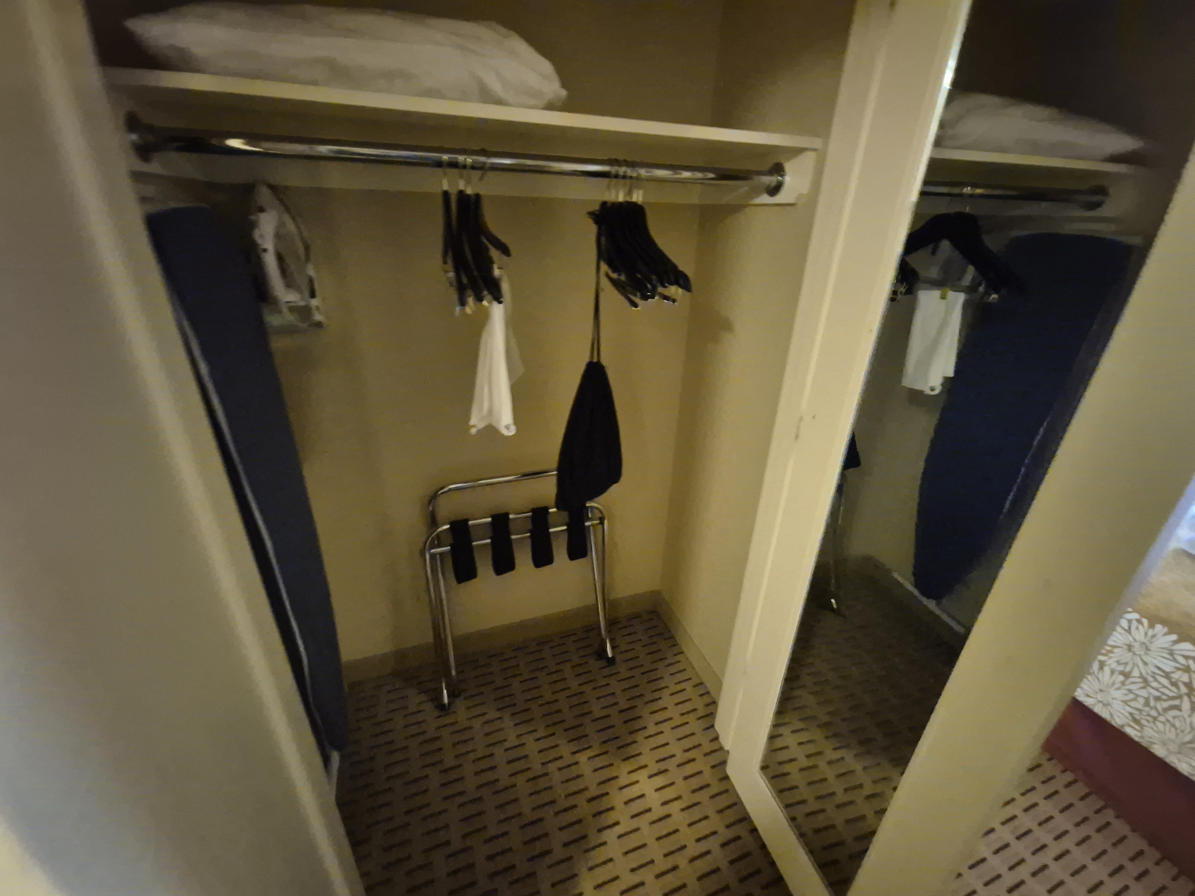 문 옆에 옷장이 있다! 여기를 주로 이용했지. 아 그런데 확실히 하이엔드 호텔이 아니면 실내화를 주지 않나 보다. 아웃렛에서 쪼리를 하나 샀는데 잘한 것 같다.