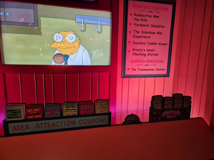 여기는 어트랙션이 2개가 있었는데 하나는 약간 청룡열차 느낌의 녀석이었다. 꽤나 재밌었는데 시간이 엄청 짧았다고나 할까. 나머지 하나는 조금 멀미를 유발할 수도 있다는 퀴디치를 모사한 그럼 어트랙션이었다. 적절하게 영상과 모션을 활용해 처음에는 엄청난 긴장감과 재미를 느끼게 하였지만… 생각보다 어트랙션이 길어서 점점 멀미가…ㅎㅎㅎ 그리고 심슨..!! 심슨은 분명 일반 관람객 대기 시간이 20분이라고 되어 있는데 익스프레스 라인으로 간 우리조차 20분 넘게 기다렸으니.. 다들 그것보다는 더 기다렸을 듯.. 이렇게 오래 기대리는 이유가.. 심슨은 계속 스토리를 설명하는 영상이 있더라… 뭐 재미가 없지는 않았지만…