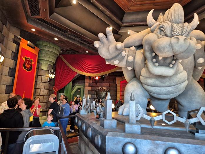 어마어마한 인파를 헤치고 가는 느낌이 좋긴 하더라.. 이날은 마리오카트를 제외하고는 모두 대기시간이 20-30분으로 적혀 있기는 했는데, 실제로 익스프레스 라인으로 가도 대기를 한 20분은 해야 했으니 실제 일반고객의 대기시간은 40분 정도이지 않을까 싶다. 그런 점에서 본다면 익스프레스를 하는 게 체력도 비축할 수 있고 나쁘지 않다.. 물론 돈이 많이 들지만…ㅋㅋ