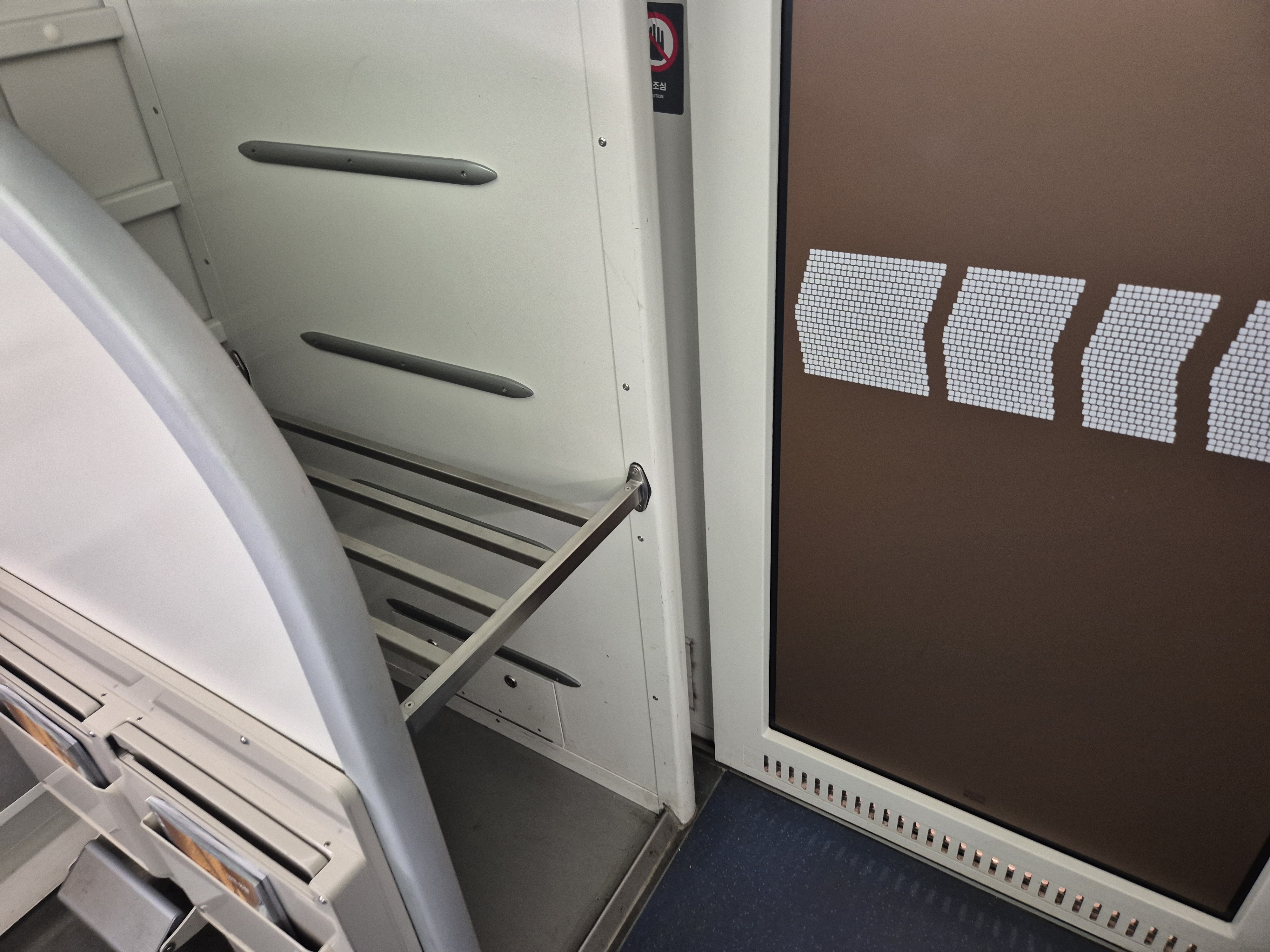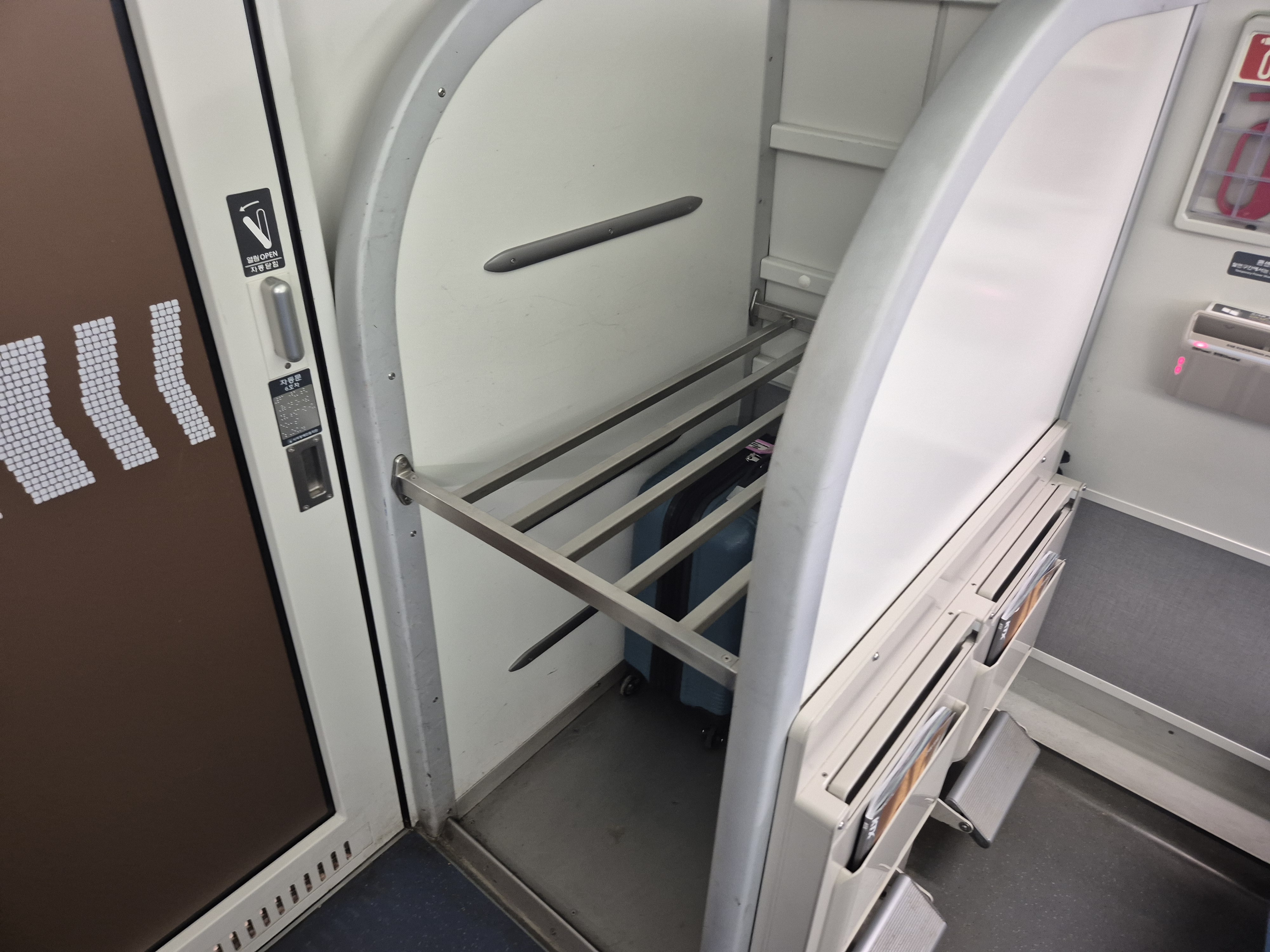 여기는 이렇게 객차 앞에도 짐을 둘 수 있는 공간이 있더라!! 오우!! 선반위에 올리는 것보다 더 괜찮은 것 같다.