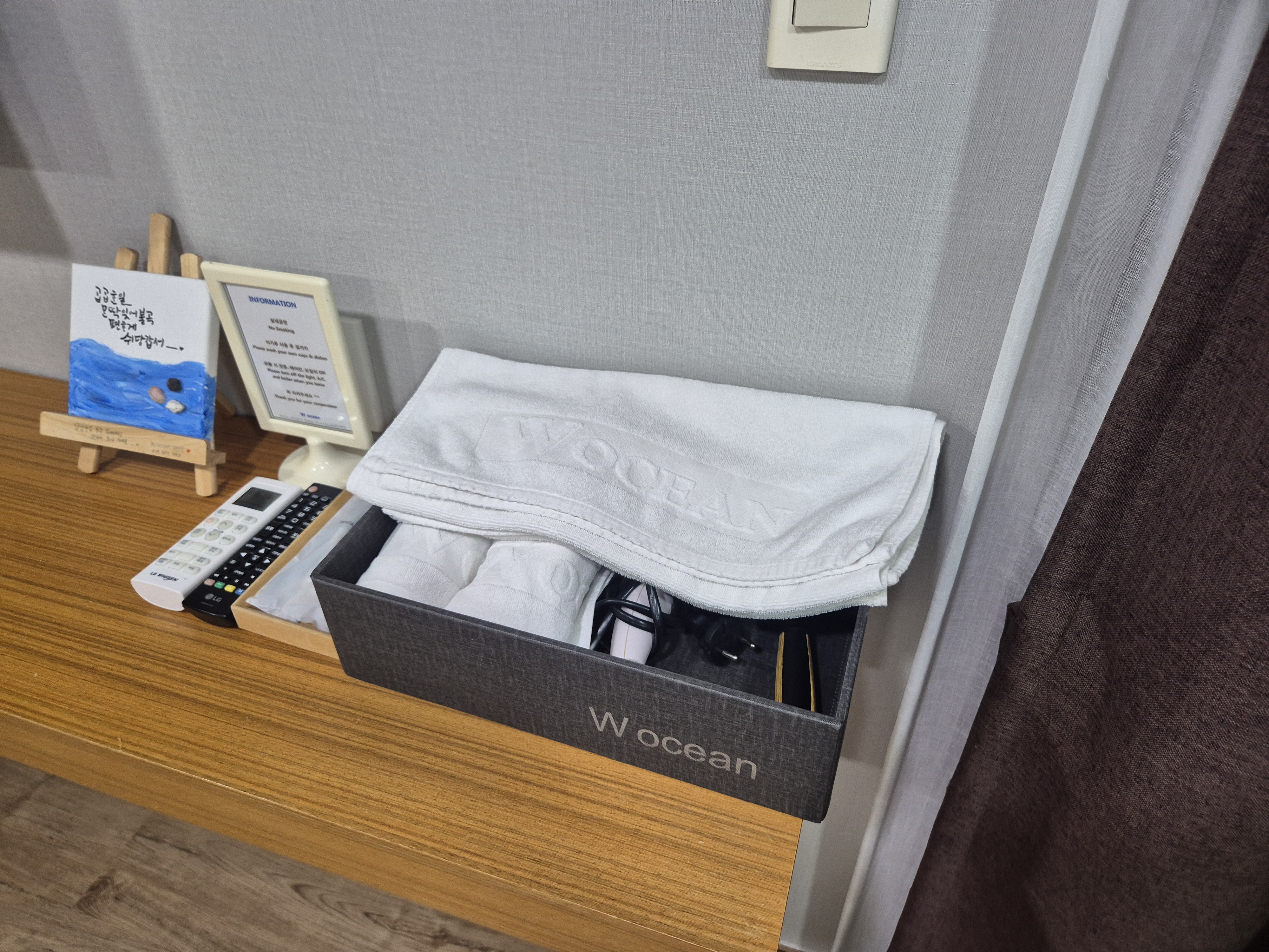 수건은 4개라서 2일간 쓰기에 충분했다.
