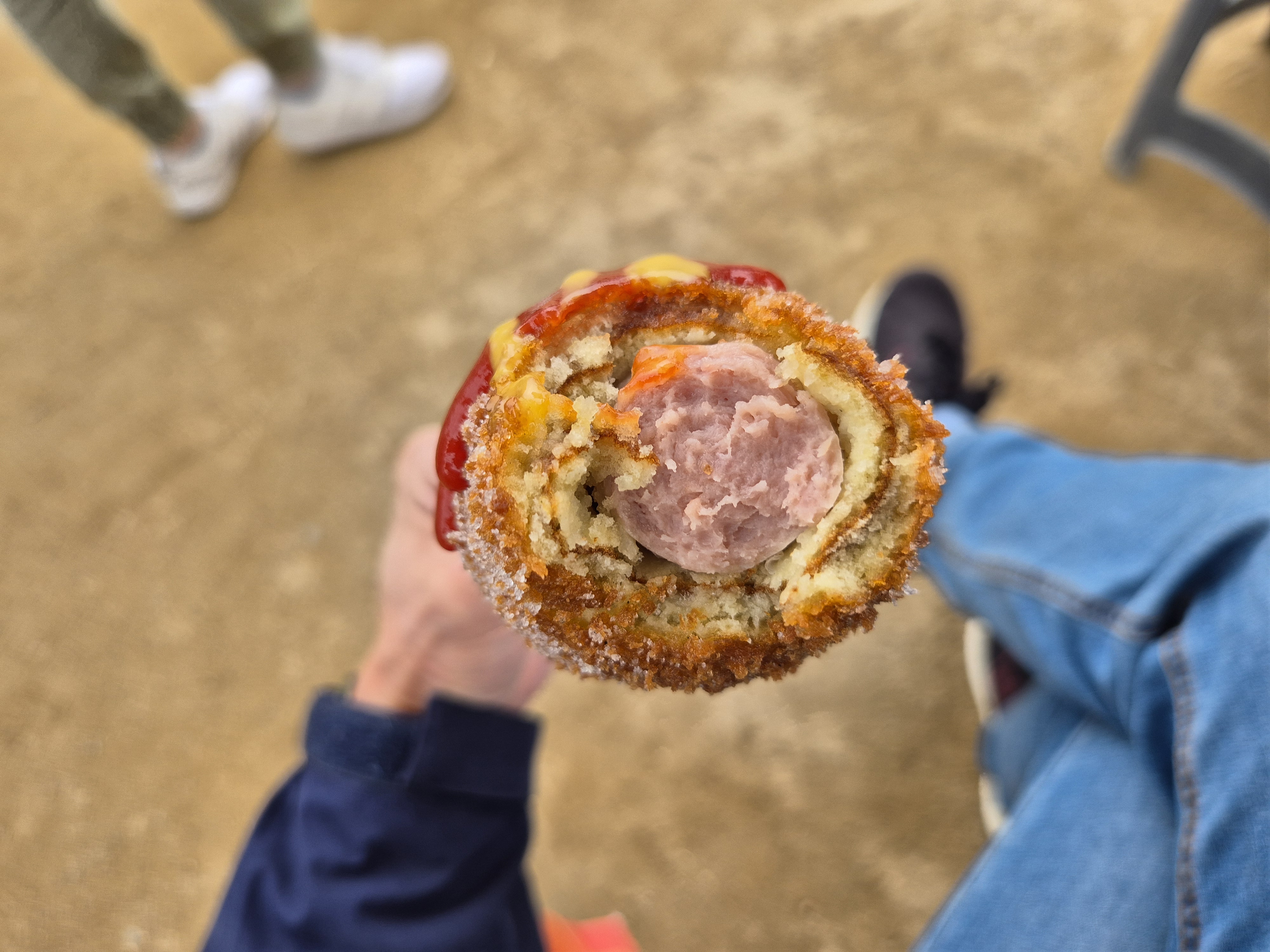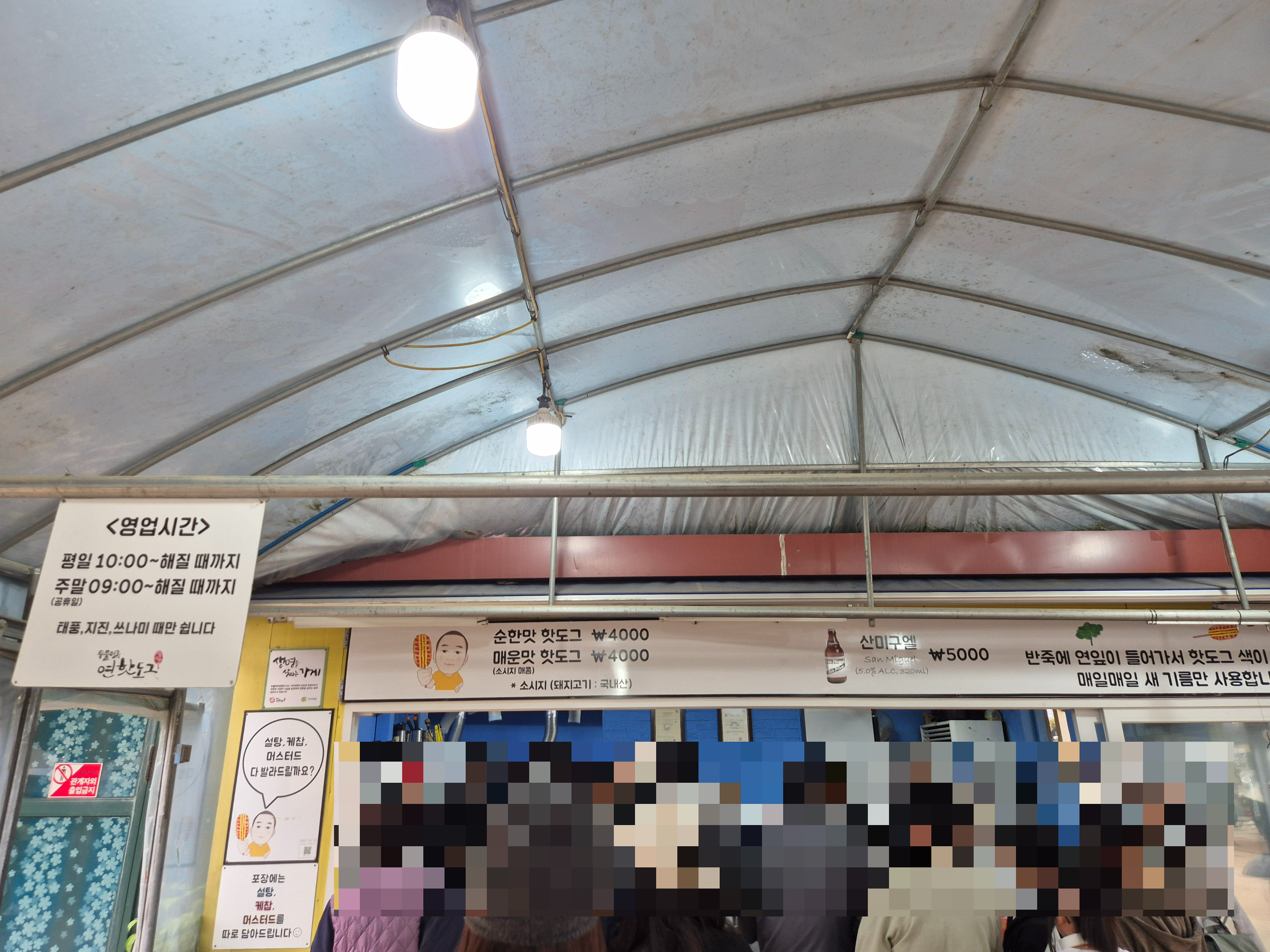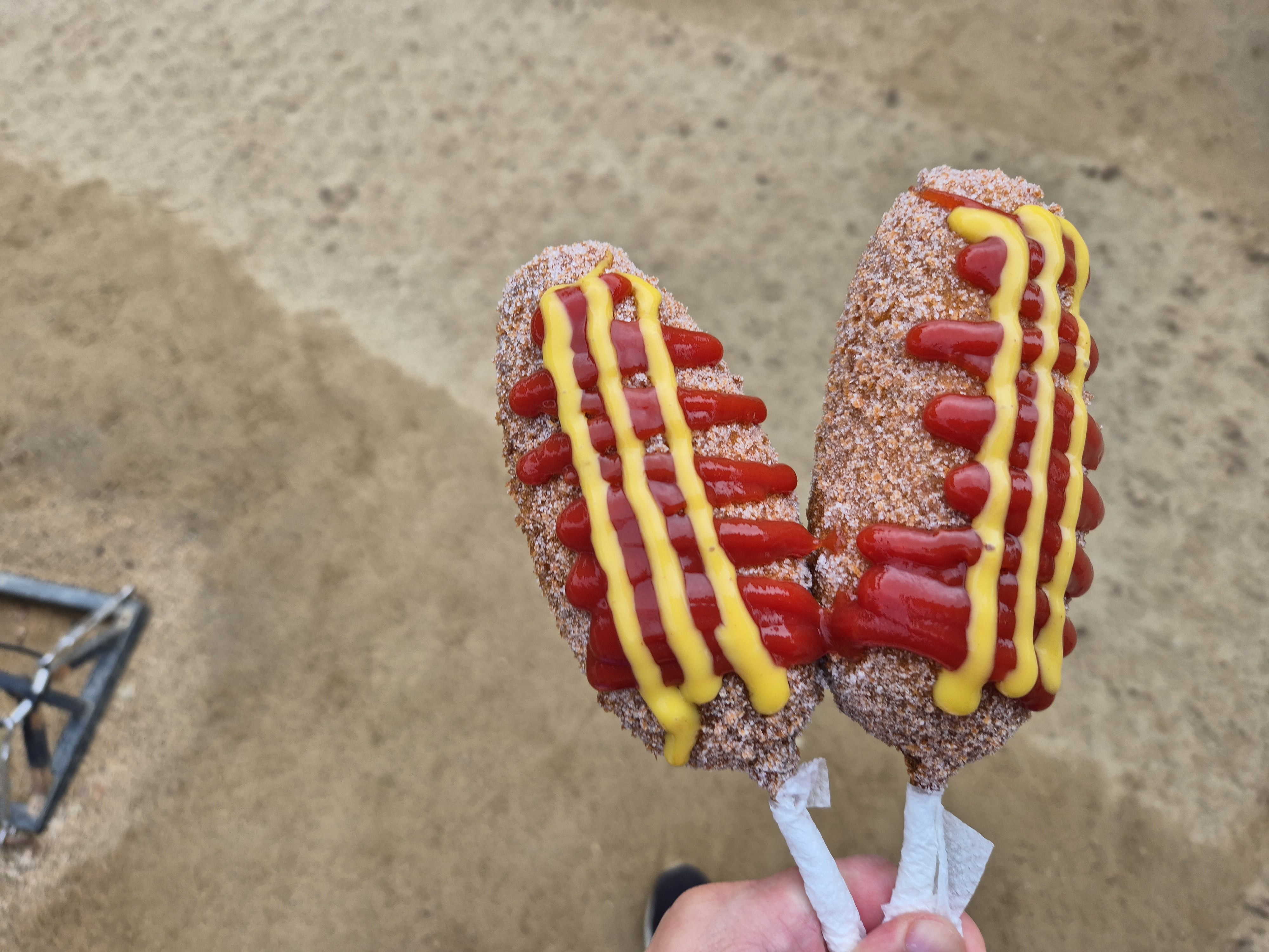 연잎물이 들어간 반죽이라고 하던데 흠.. 잘 모르겠더군...! 사실 엄청 특징 있는 맛이라기보다는 그냥 여기 오면 한 번은 먹어볼 만한 그런 핫도그였다. 물론 다음번에 갔을 때 또 사 먹을지는 모르겠네...ㅋㅋ