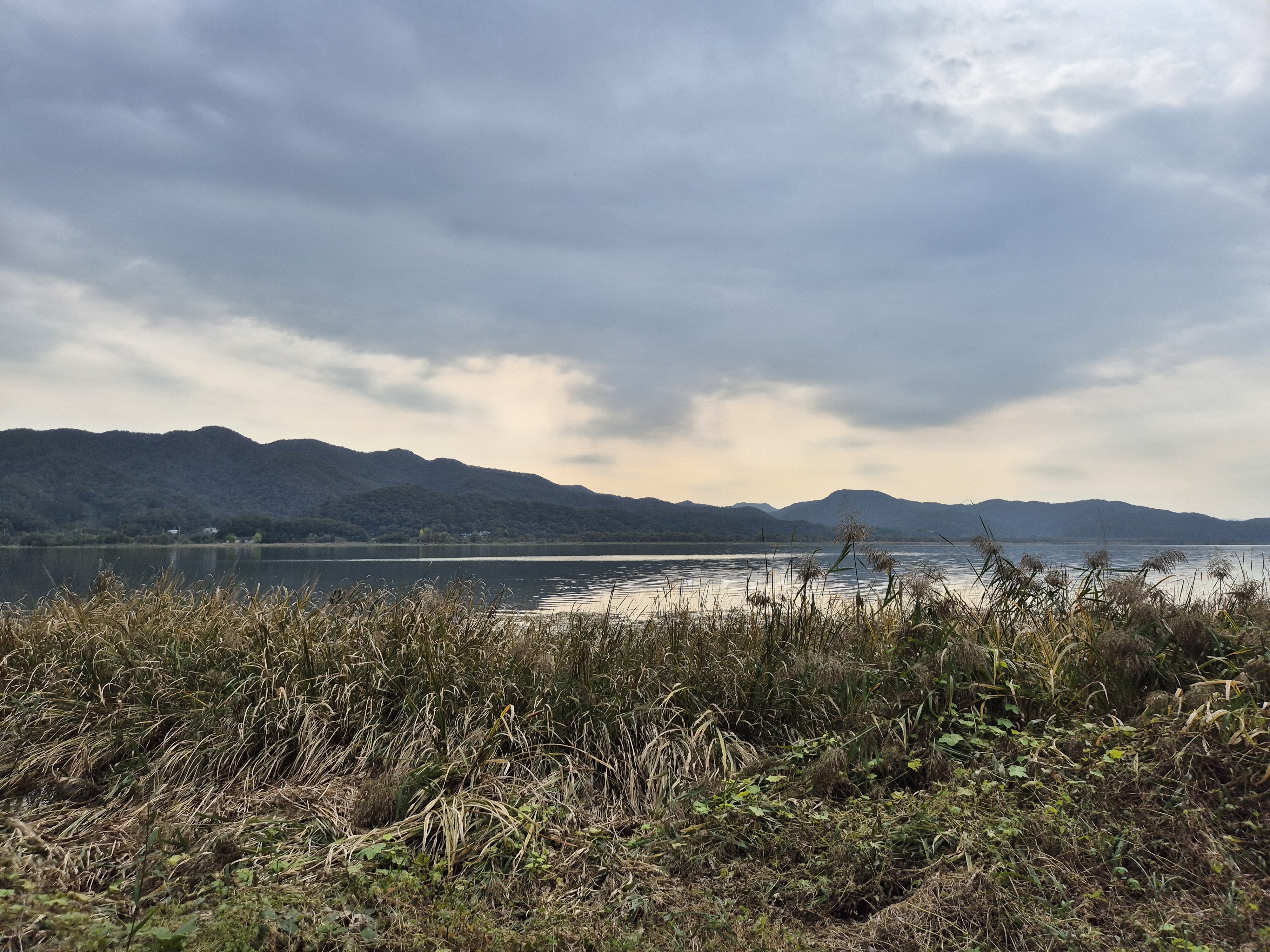 억새? 갈대? 풀 사이로 한강의 정취를 느낄 수 있다. 하지만 날이 곧 흐려지더군...ㅠㅠ
