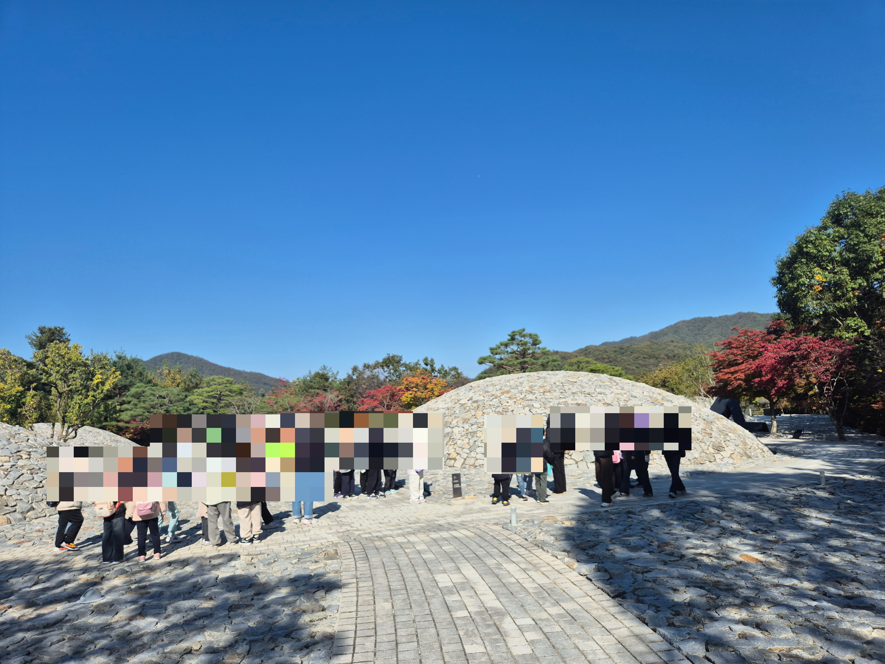 경주 고분을 모방한 작품이란다. 각 고분이 한국의 지역(도)을 상징했는데 위치가 중구난방이라며 무슨 의도인지 모르겠다고 하시니 누군가 혹시나 작가가 느끼는 그 지역과의 거리감을 반영한 게 아니냐는 아주 시적인 표현을 해주셨다. 역시 꿈보다 해몽이다.