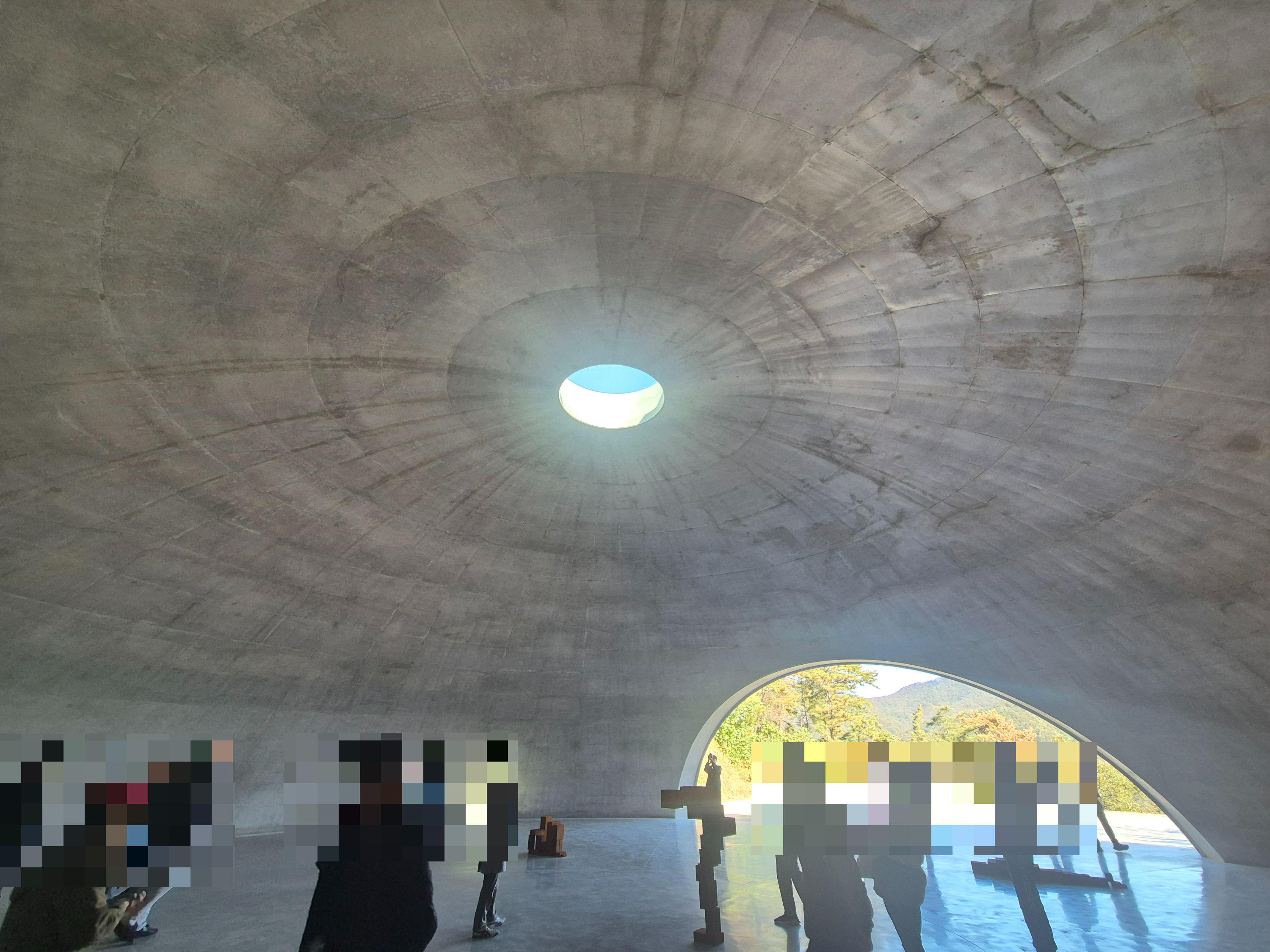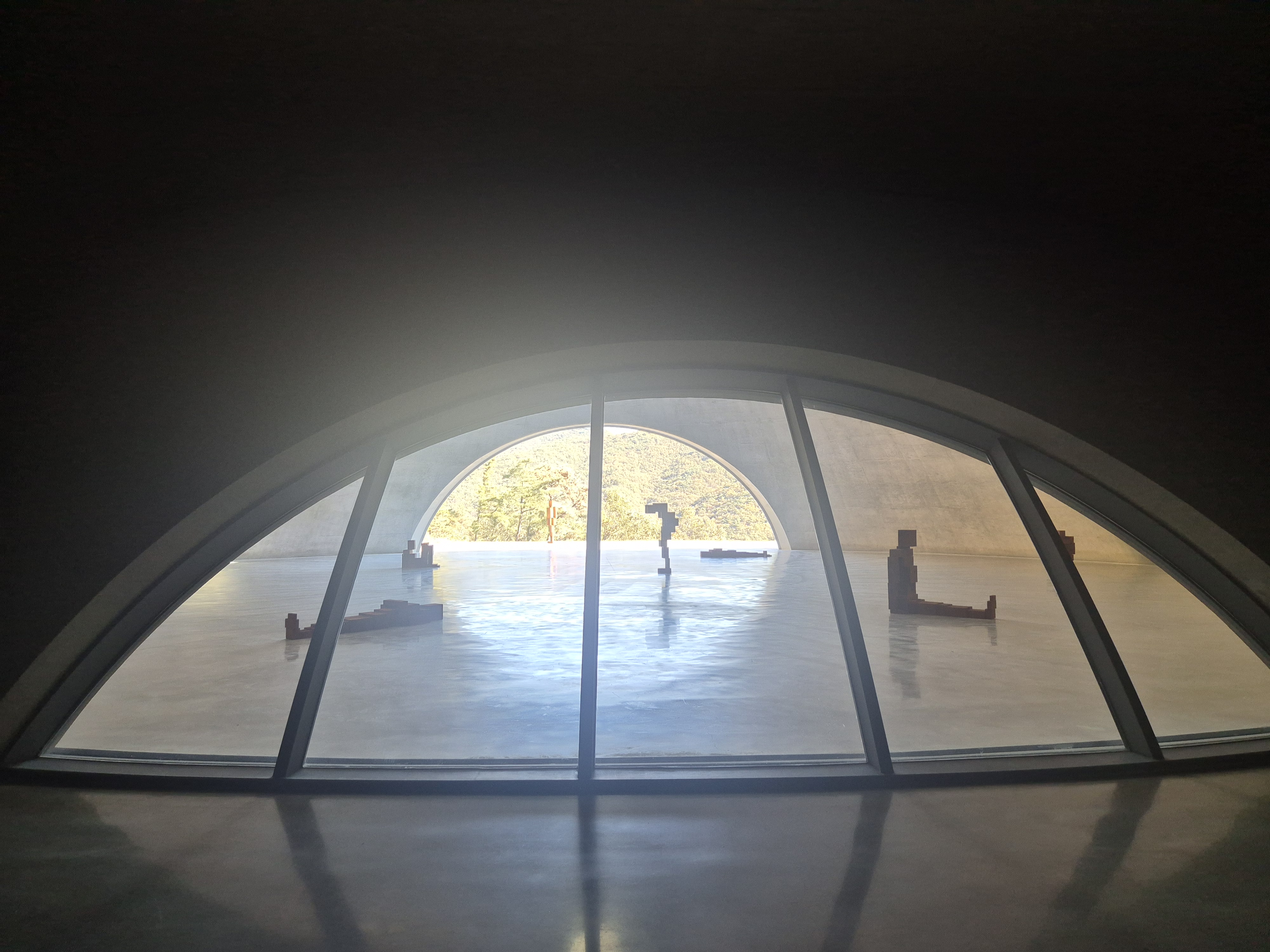 요렇게 자연 채광을 잘 활용하는 게 안도 타다오 스타일인 것 같더라. 그리고 묘한 돔 형식으로 지어져서 발소리가 신기하게 울리더라. 뭔가 오묘한 파동의 메아리 같은 느낌이다. 만약 여기서 노래를 부르면 어떻게 될까 궁금하더라..ㅎㅎ 여하튼 그래서 침묵을 지켜야 한다고 한 거구나 싶더라.