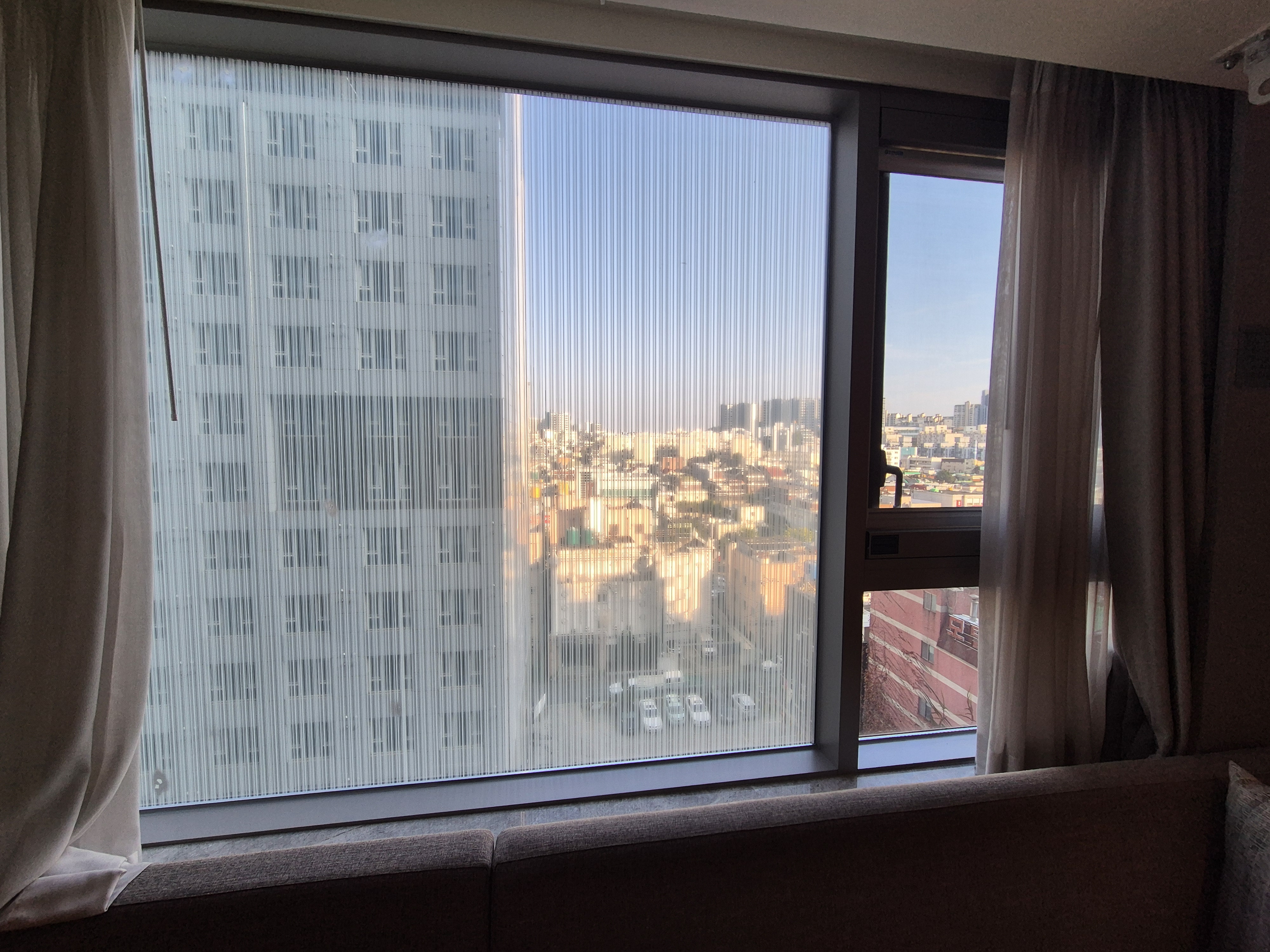 오 역시 태블릿으로 모든 게 제어가 되는구나 싶었는데 조명만 가능하던데..ㅎㅎㅎ 커튼으로 개폐해야 하더라.