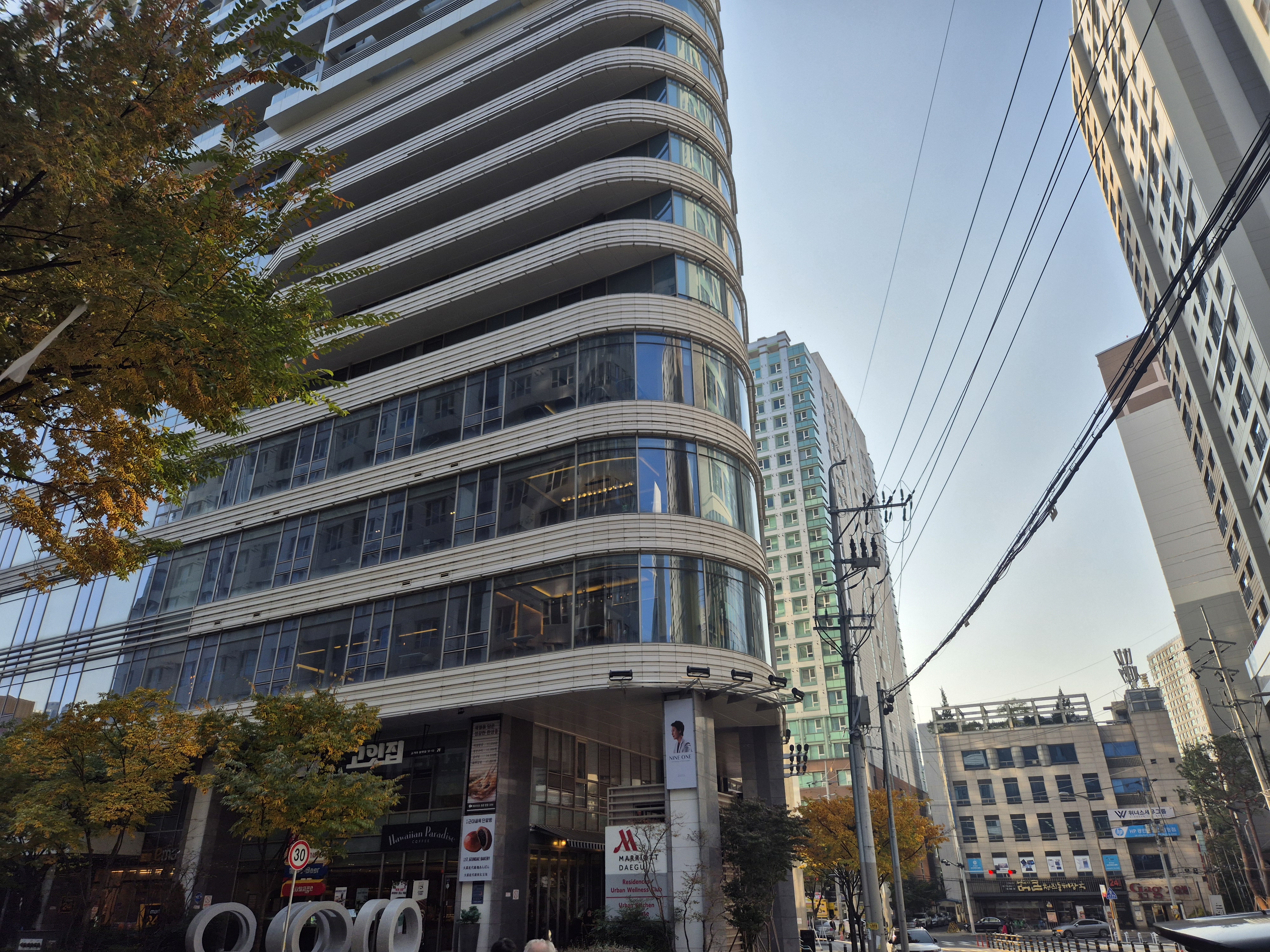 동대구역에 위치한 대구 메리어트 호텔에서 2박을 지낼 기회가 생겼다. 기차에서 내리고 동대구터미널 방면출입구로 들어가서 에스컬레이터를 타고 한 층 내려오면 반대편 지상으로 나올 수 있다. 터미널에서 호텔까지 걸어서 대략 5분 내외? ㅎ 삼거리의 보행자 신호가 바뀌는데 까지 꽤 오랜 시간이 걸리긴 하지만 그 시간을 제외하고 순수 걷는 시간만 봤을 때 그 정도라는 얘기다.