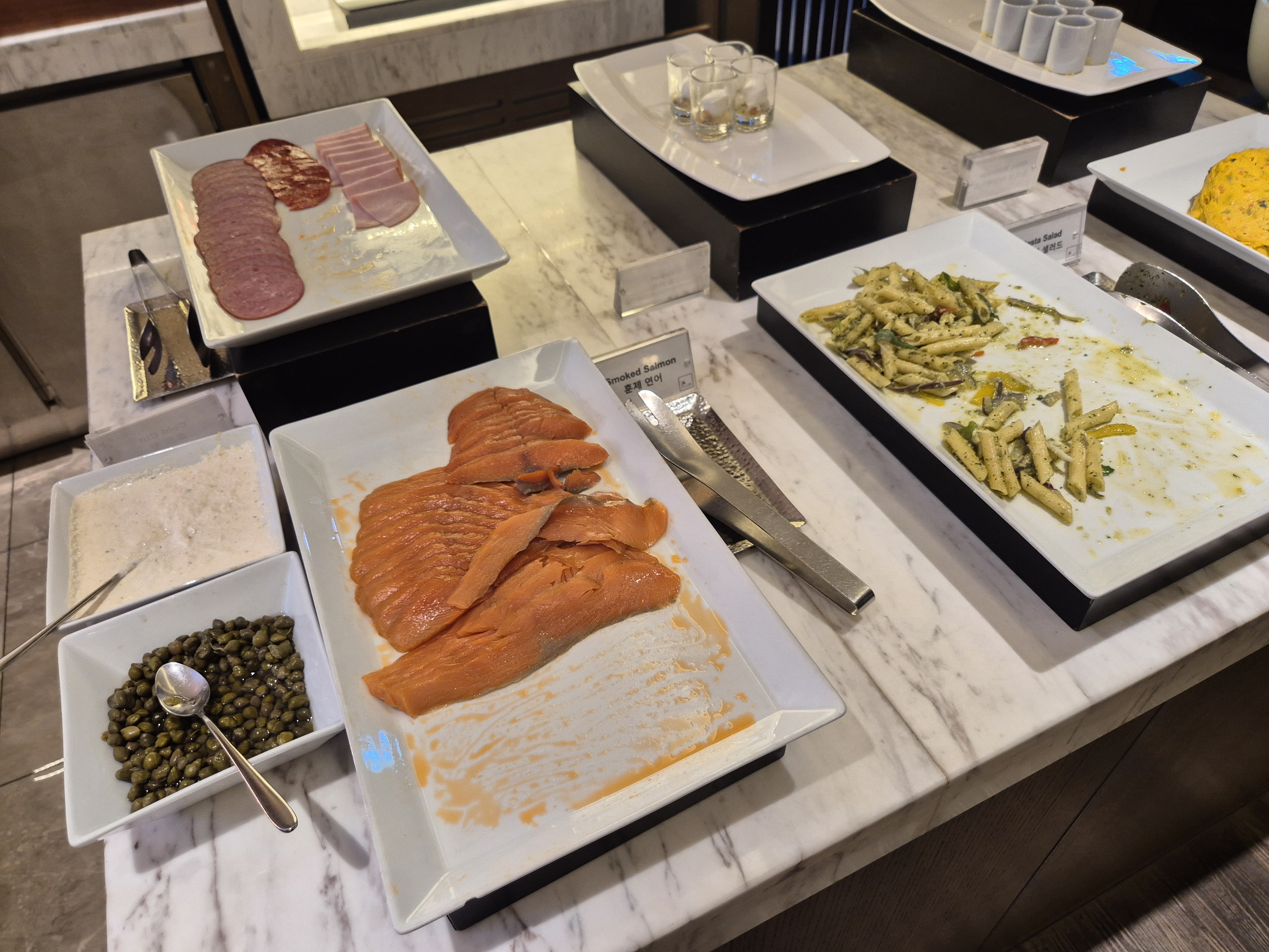 연어와 파스타샐러드, 각종 햄!