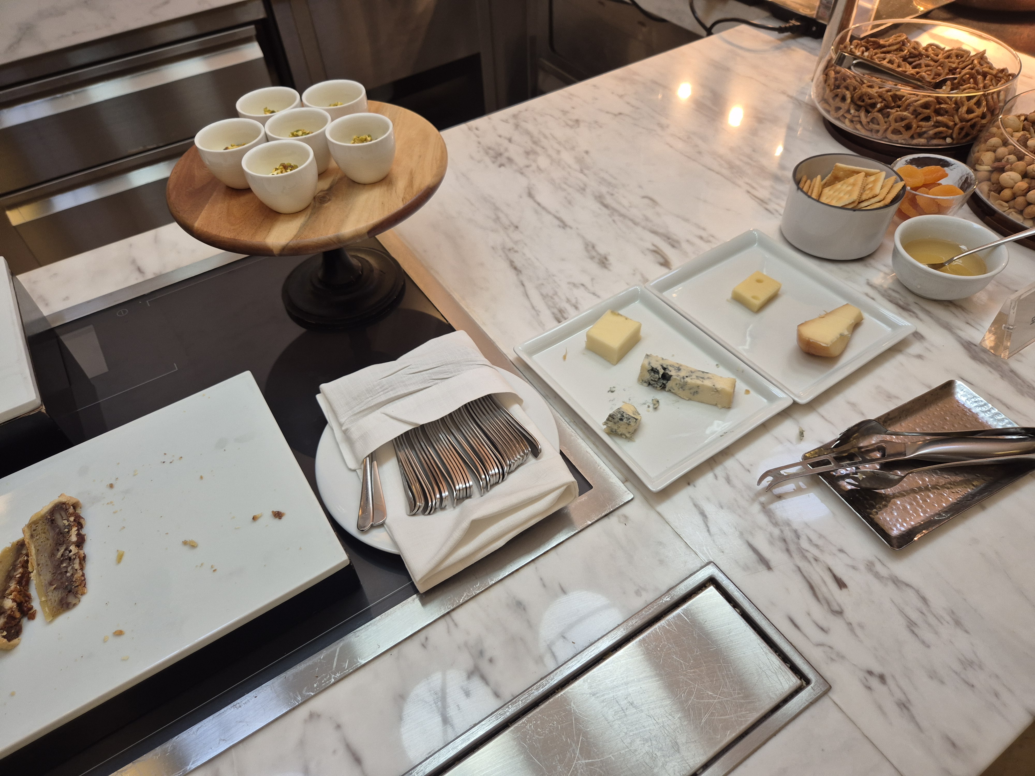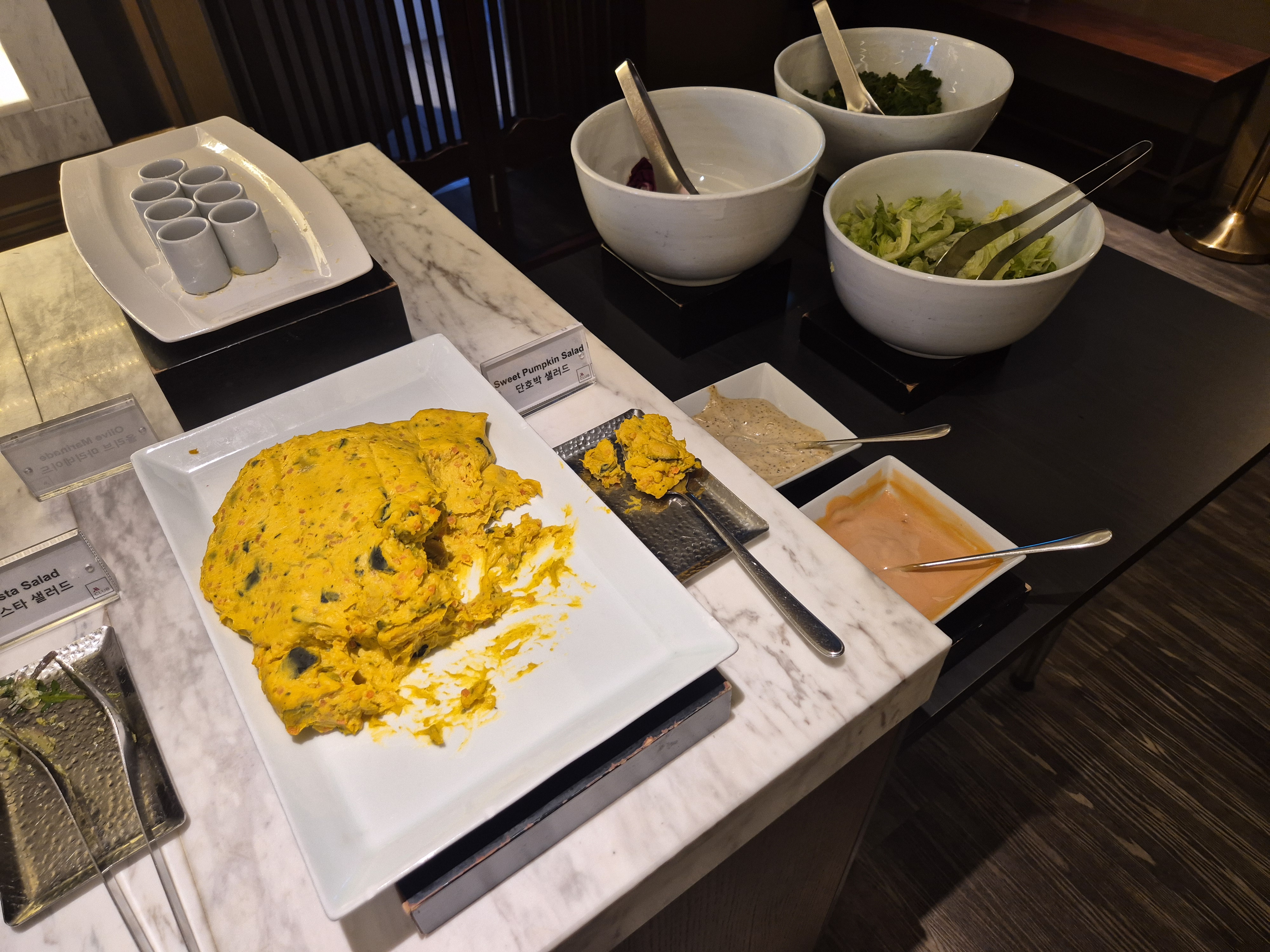 저녁을 먹고 좀 급하게 나왔더니 아직 M 클럽 해피아워 시간이 끝나진 않아 뭐가 있나 살펴보러 올라갔다. 일단 간식들...!