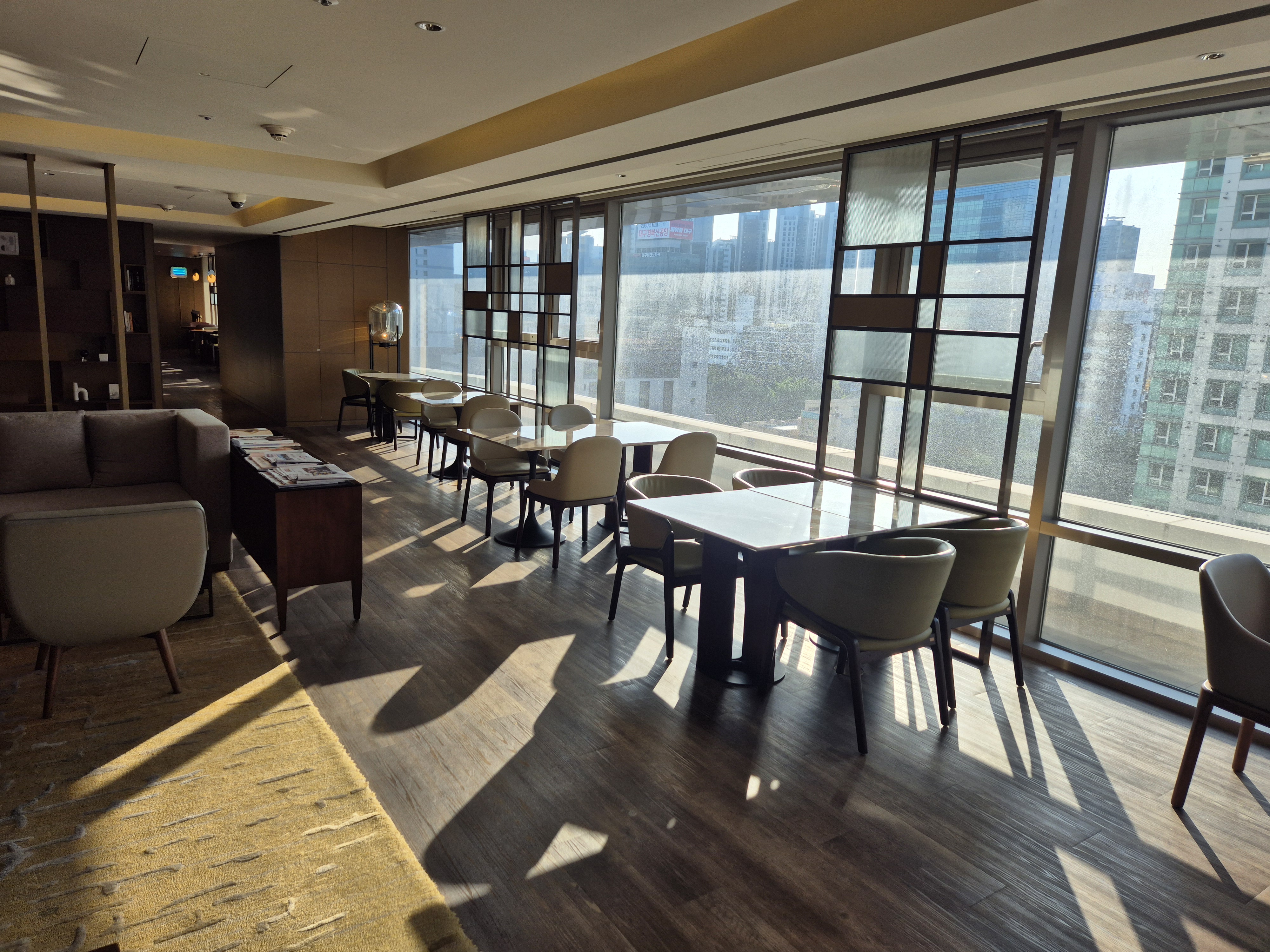 라운지가 서향인지 햇살이 장난 아니더라.