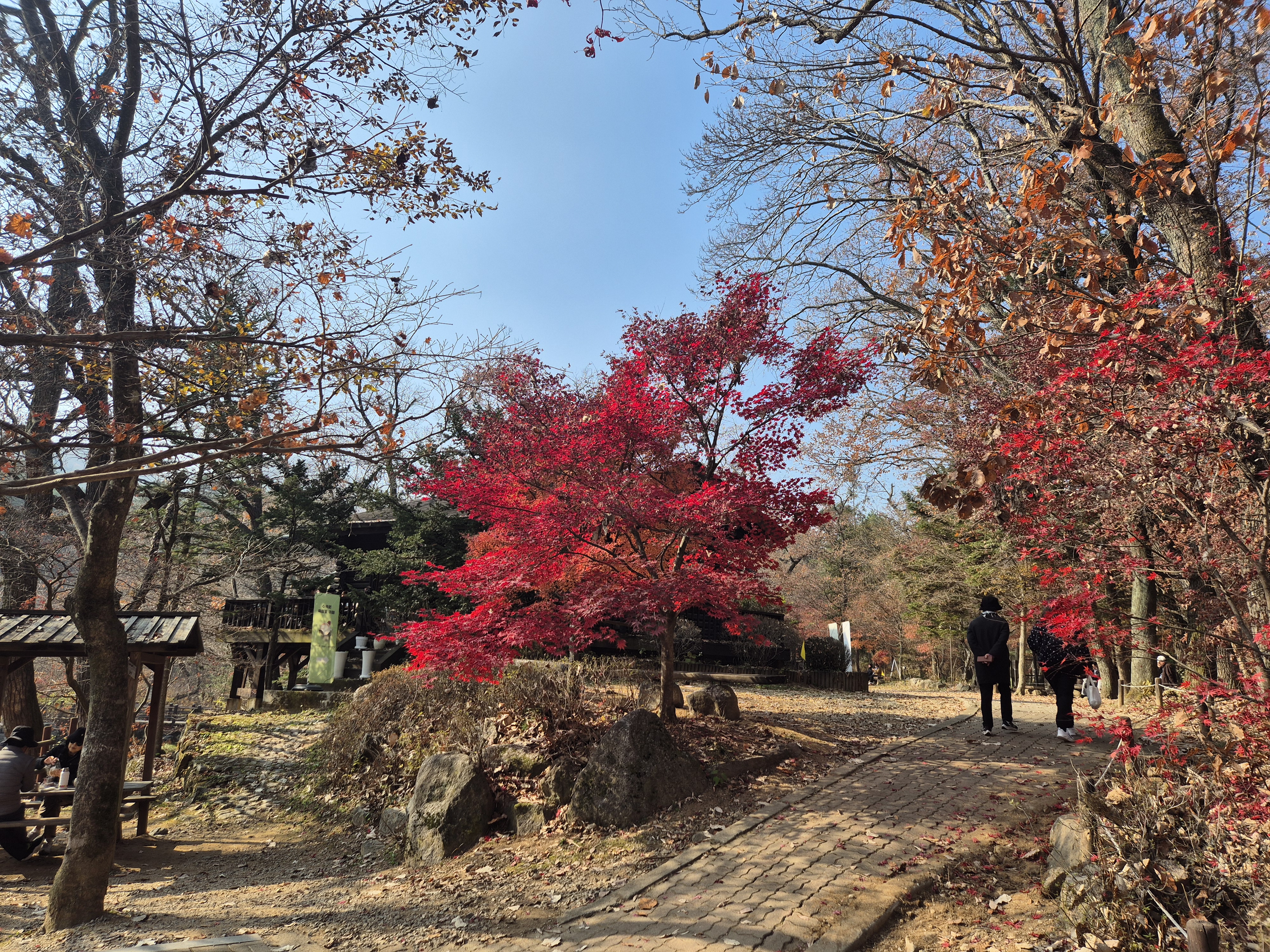 붉은색 단풍과의 조화가 좋다.